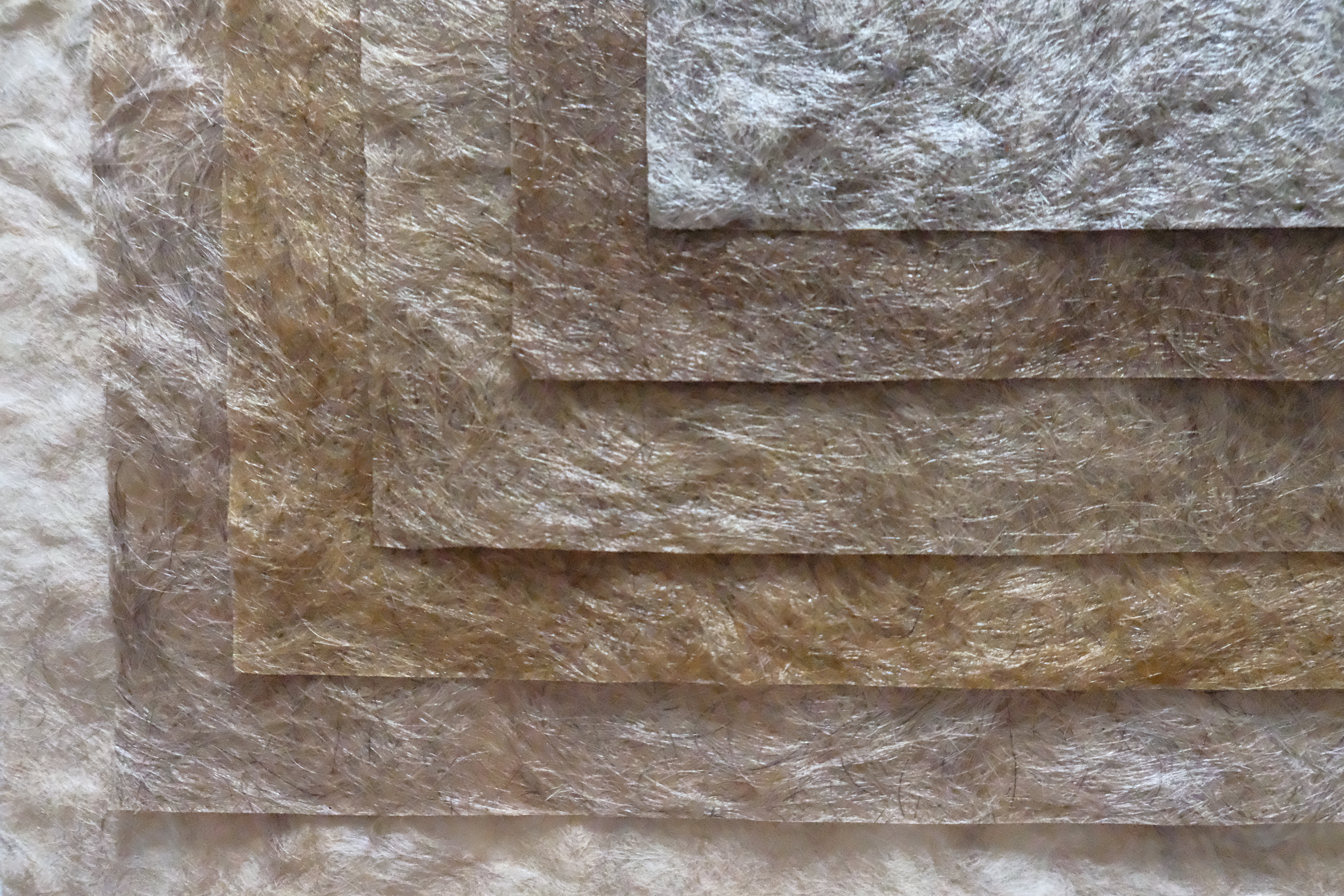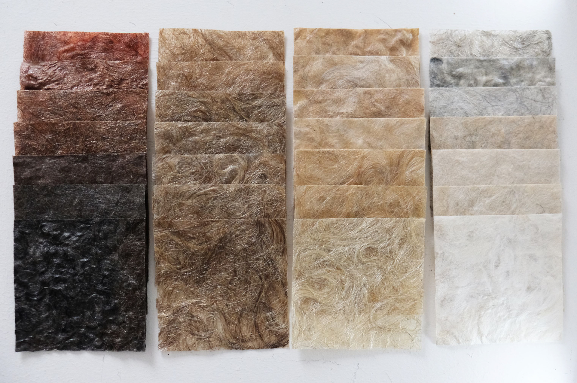 Formats, textures et teintes sont variables. Le matériau peut être réalisé à partir de cheveux humains ou de poils d’animaux, selon le projet.