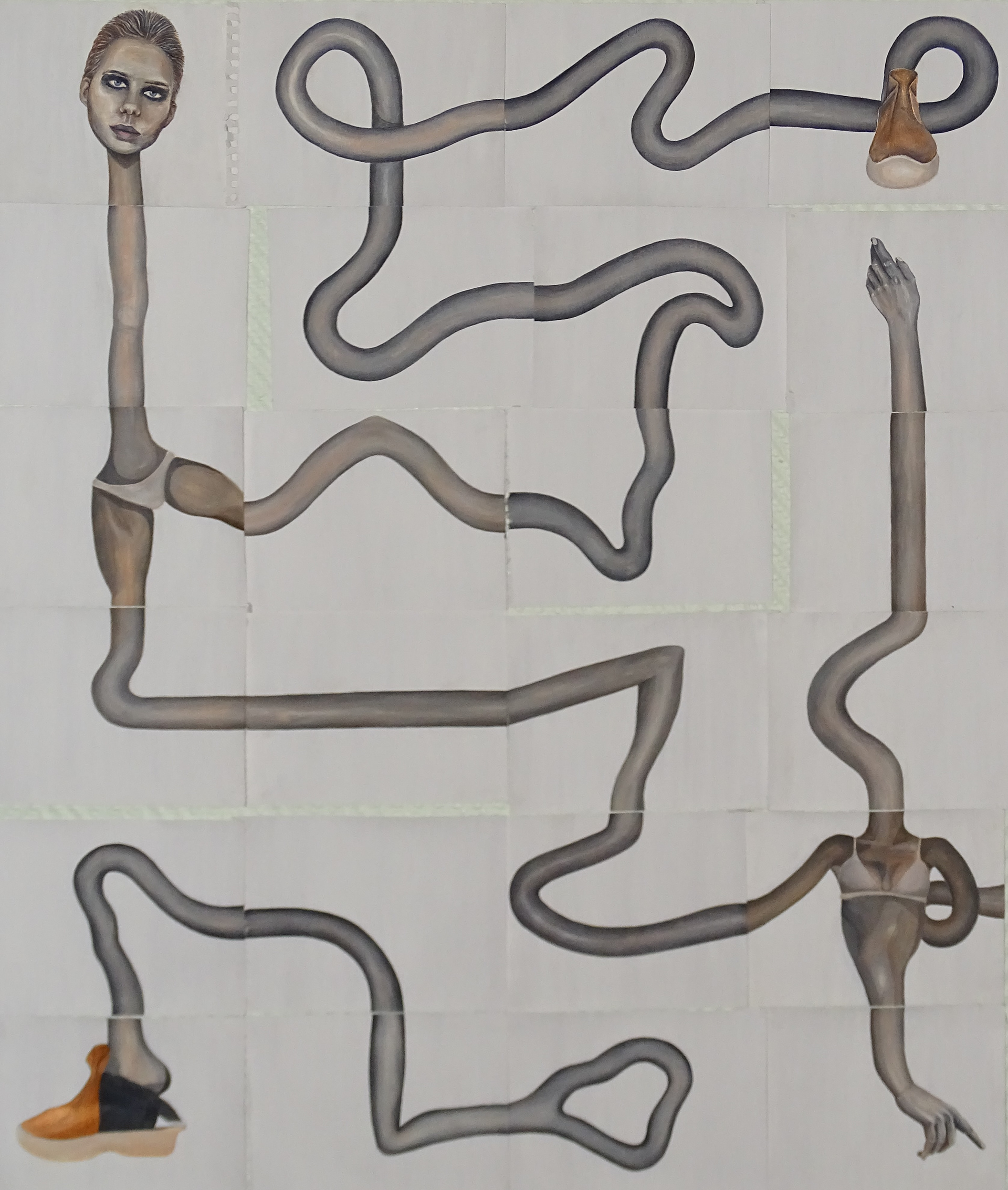 Ici, j'ai cherché à apporter divers sens de lecture à mon personnage à travers cette composition graphique. Chaque format peut s'accoler à un autre et ainsi modifier sa forme jour après jour.