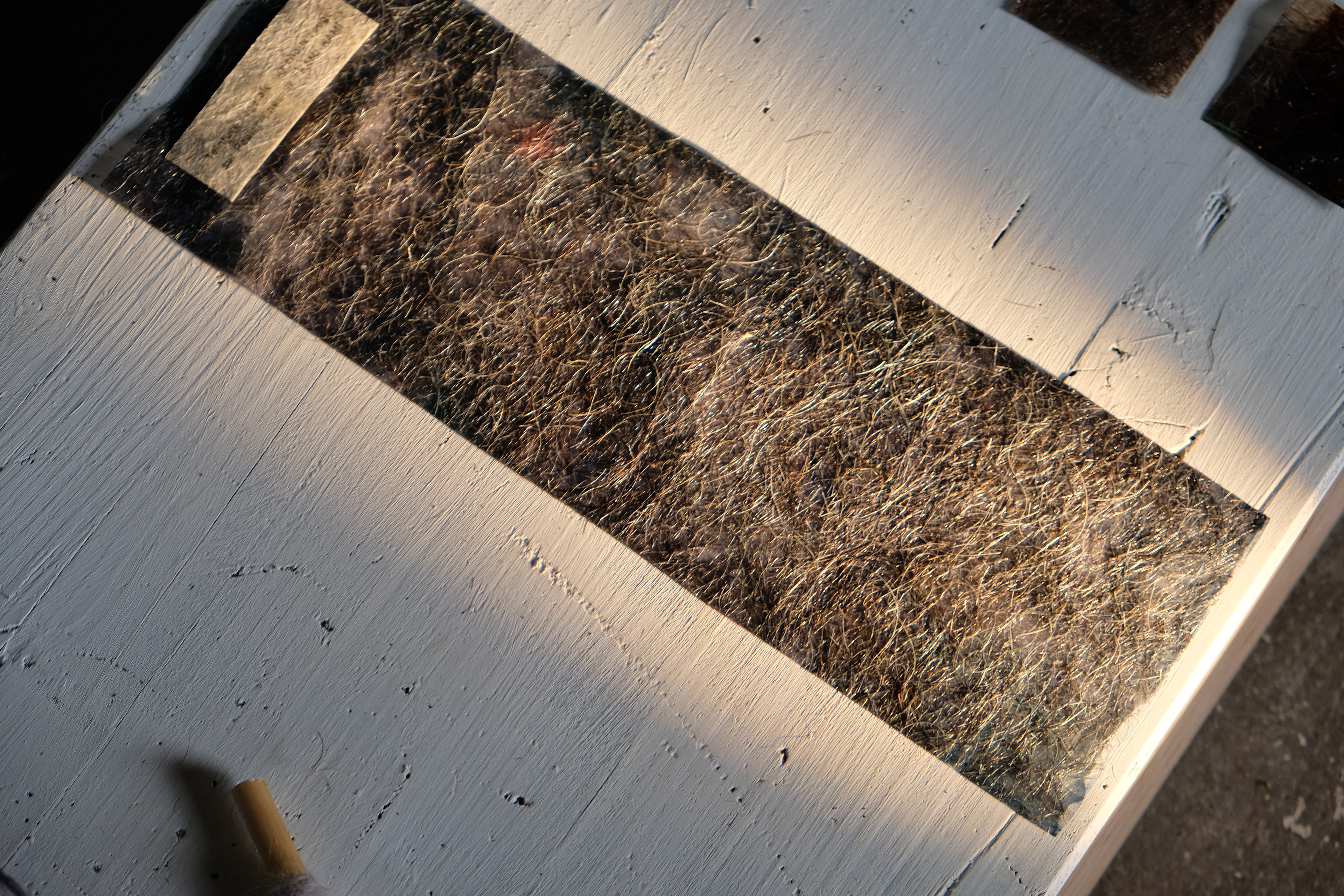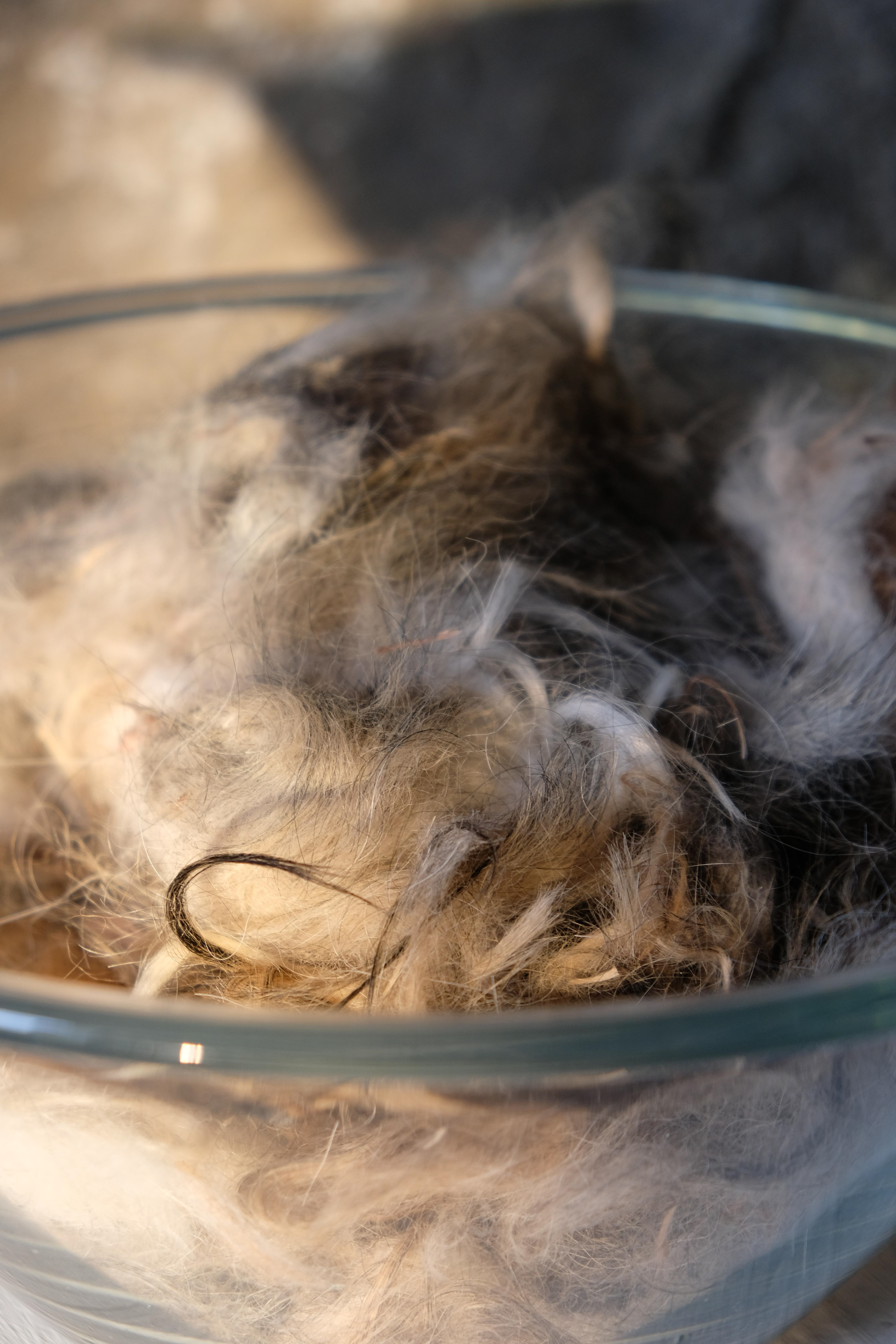 Face à ce constat, elle a exploré la revalorisation des poils canins et des cheveux, des matières naturelles qui, lorsqu'ils ne sont pas recyclés, posent de nombreux problèmes environnementaux et sanitaires malgré leurs qualités intrinsèques. Collaborant avec des salons de coiffure et des toiletteurs locaux, elle a collecté plusieurs kilos de matière première, en quelques semaines.