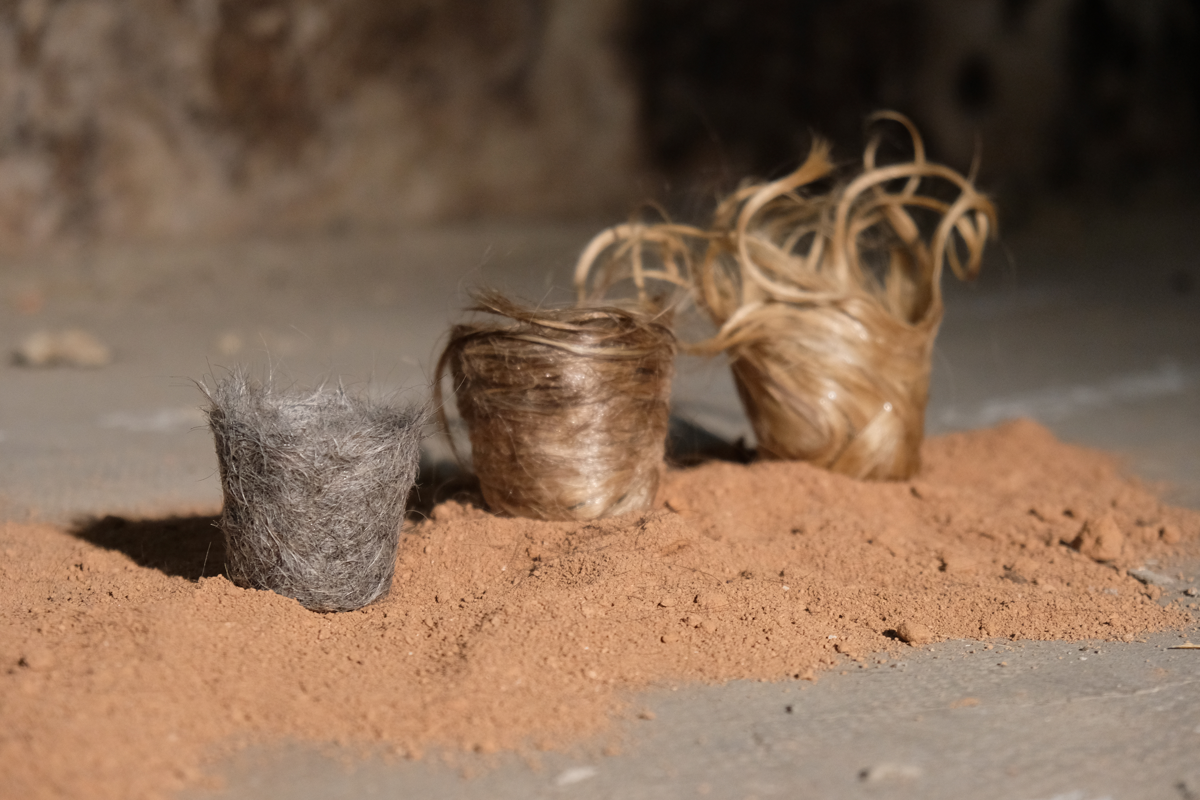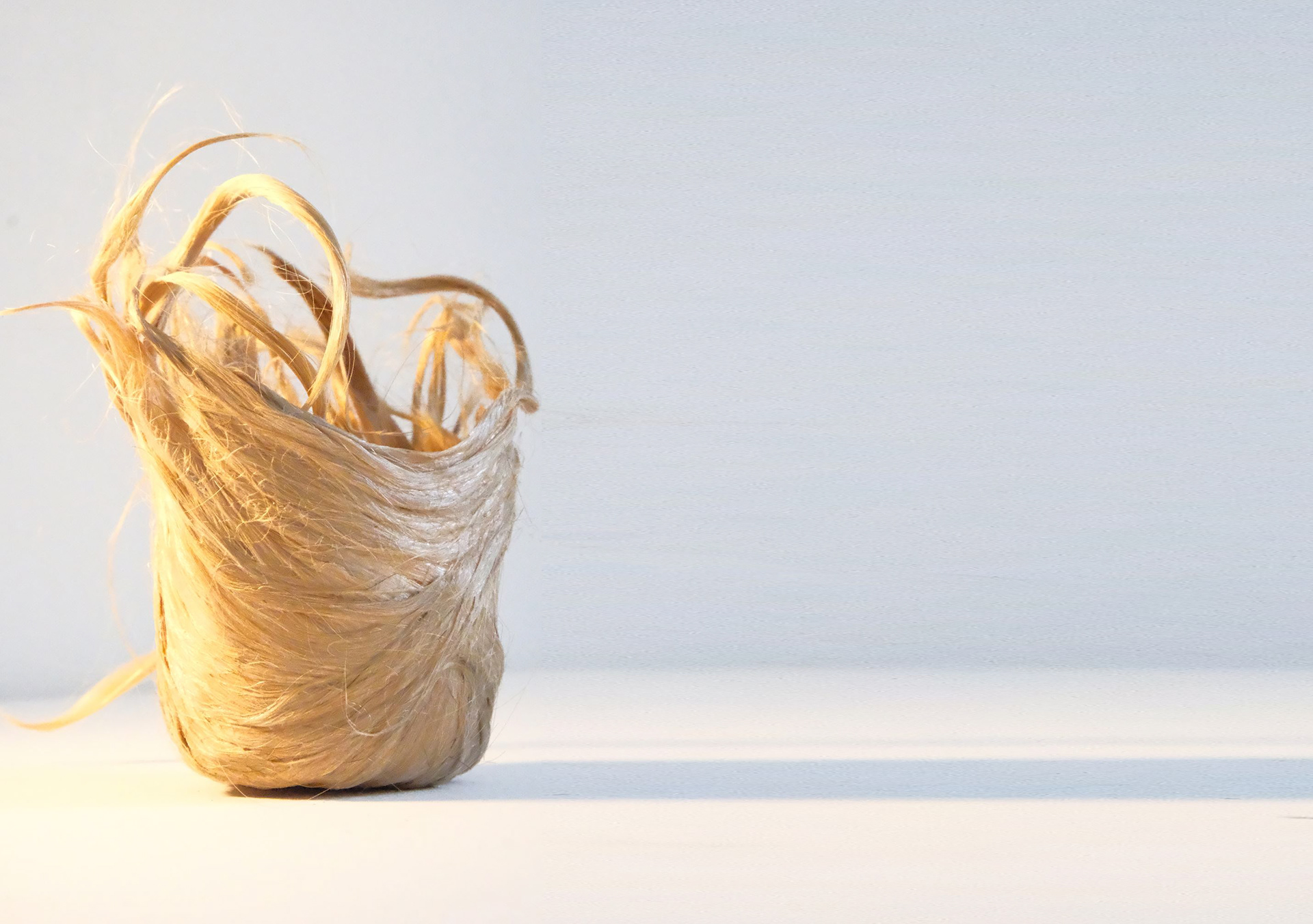 Passage de la 2D à la 3D. Recherche de nouvelles manières de travailler le cheveu par sa mise en volume. Le cheveu étant l’une des matières organiques la plus riche en azote, il est par conséquent un engrais naturel. Symboliquement, en concevant un pot de semis à partir des cheveux d’un être aimé, d’un proche décédé, je propose ici un objet relique éphémère qui pourra laisser place à une magnifique anémone par exemple.